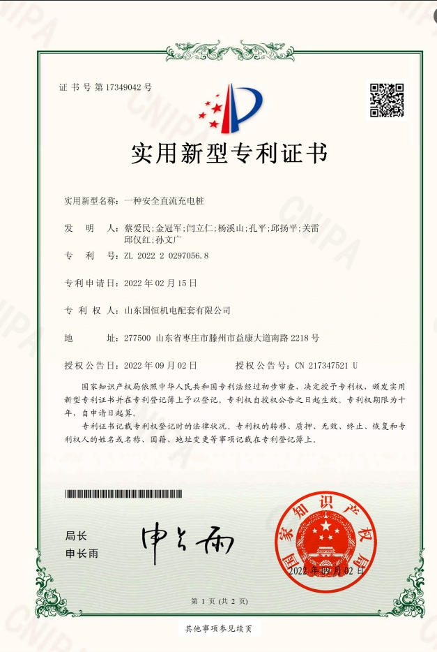 山東國恒機電配套有限公司簡      介 山東國恒機電配套有限公司是一家集新能源、高科技、智能化生產(chǎn)研發(fā)、制造、銷售為一體的綜合性現(xiàn)代化高新技術(shù)企業(yè),公司座落在魯班故里、墨子之鄉(xiāng)滕州,公司始建于2005年,注冊資本1億元,擁有各類中、高級專業(yè)技術(shù)人員100余名。主營業(yè)務(wù)涉及高科技智能電力裝備、新能源儲備輸送,220kv及以下輸變電工程勘察設(shè)計、制造、銷售、安裝、售電和智能充電樁能效運維,并從事生產(chǎn)制造交直流充電樁設(shè)備、成套開關(guān)設(shè)備、各型號高低壓開關(guān)柜、箱式變電站等電氣設(shè)備,是棗莊地區(qū)唯一一家國資入股的新能源高端品牌企業(yè)。公司擁有獨立… 【查看更多】